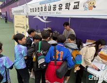 안녕일보 배윤 기자 | 경기도안양과천교육지원청는 2026년 3월 30일, 안양종합운동장에서 개최된 ‘안양과천 교육장배 육상경기대회’와 연계하여 '안양과천미리내공유학교' 홍보 행사를 운영했다. 이번 행사는 육상경기대회에 참가한 학생과 학부모를 대상으로 진행했으며, 현장에서 자연스럽게 안양과천미리내공유학교 봄시즌 운영 프로그램과 지역교육협력 교육을 안내하는 찾아가는 홍보 방식으로 운영하었다. 행사장 내 홍보 부스에서는 ▲ 안양과천미리내공유학교 지역맞춤형 봄시즌 2기 36개 프로그램 안내 ▲ 학교 맞춤형 교육과정 연계 사업 소개 ▲안양시·과천시 교육협력 사업 홍보 등 다양한 교육 정보를 제공했다. 특히 참여한 학생과 학부모를 대상으로 안양과천미리내공유학교 개설 프로그램 신청 상담 및 학부모 대상 진로·교육 방향 안내를 함께 진행하여 큰 호응을 얻었다. 이번 행사는 학교체육 행사와 교육정책 홍보를 결합한 사례로, 대규모 학생 참여가 이루어지는 육상경기대회를 활용하여 보다 효과적인 홍보를 실현했다는 점에서 의미가 있다. 현장에 참여한 한 학부모는“아이의 진로와 연계된 다양한 프로그램을 한 자리에서 알 수 있