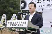 안녕일보 배윤 기자 | 김성제 의왕시장이 9월 16일 모락산 유격장에서 개최된 ‘6.25 전사자 유해발굴 개토식’에 참석했다. 이 자리에서 김 시장은 추념사를 통해 “모락산에 잠든 호국영령들의 명복을 빌며, 6.25 전사자들의 고귀한 희생과 헌신을 기려 나가겠다”고 말했다. 한편, 6.25 전사자의 넋을 기리고 유해를 가족의 품으로 모시기 위해 추진되는 이번 유해 발굴 사업은 내손동 산151-1번지 일대(모락산 200고지)에서 실시되며, 육군 제51보병사단과 국방부 유해발굴단 주도로 9월 22일부터 10월 24일까지 5주간 진행될 예정이다.