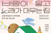 안녕일보 배윤 기자 | (재)김포문화재단은 연말연시를 맞아 가족의 온기와 새해의 희망을 담은 하반기 기획전시 '바람이 닿고 노래가 머무는 집'을 12월 20일부터 2026년 3월 6일까지 김포아트빌리지 한옥마을 창작 3·4·5동에서 개최한다고 밝혔다. 이번 전시는 ‘집’이라는 상징을 통해 한 해를 성찰하고 다가올 새해의 행복을 기원하는 시민참여형 전시로, 공현진·오상훈·한경희 작가가 조각, 패브릭, 미디어, 설치 작업을 선보인다. 이번 전시에서 세 명의 작가는 동시대 예술의 언어로 새로운 한해, 새로운 여정을 준비하는 이들에게 서로 다른 방식의 머무름을 건넨다. 공현진 작가는 한국의 무속과 민간신앙을 바탕으로 새해를 맞이하는 마음을 조각에 담아 전통과 현재를 이어내는 새로운 기원의 자리를 마련한다. 오상훈 작가(문화지형연구소 씨티알)는 각자가 지닌 걱정을 털어놓고 서로 교환하며 위로를 얻는 참여형 작업 '걱정교환소'를 소개한다. 한경희 작가는 실과 천 조각들을 이어붙여 겹치고 얽힌 천의 질감 속에서 자연의 풍경을 떠올리며 놀이처럼 즐기는 감각적 체험을 제공한다. 한편, 이번 전시에는 전시 감상을 넘어 시민이 직