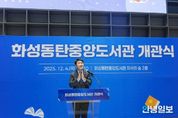안녕일보 배윤 기자 | 화성특례시가 4일 화성동탄중앙도서관 2층 지식의 숲에서 개관식을 열고 새로운 지식문화 플랫폼의 출발을 알렸다. 지난달 3일 문을 연 화성동탄중앙도서관은 한 달여간의 운영을 통해 안정적인 서비스 기반을 갖춰왔으며, 이날 개관식은 지역 커뮤니티 중심 공간으로서의 역할을 본격적으로 확장하기 위해 마련됐다. 개관식에는 정명근 화성특례시장, 배정수 화성특례시의회 의장, 관내 교육기관 및 도서관 관계자, 주민 등 250여 명이 참석해 도서관의 개관을 함께 축하하고 향후 운영 방향을 공유했다. 개관식은 동탄 청계동 소재 어린이합창단 ‘싱잉엔젤스’의 축하공연으로 막을 올렸으며, 도서관 시설 안내 영상, 사업 경과 보고, 기념사 및 축사, 기념 퍼포먼스, 어린이 시 낭송 등이 진행됐다. 부대행사로는 ▲정조대왕과 화성시 대표 캐릭터‘코리요’ 활용한 북큐레이션 및 전시 ▲인공지능(AI) 안내로봇 체험 ▲인공지능(AI) 포토부스 ▲나만의 그림책 만들기 ▲캘리그라피 ▲미니어처 전시 등 가족과 어린이가 함께 즐길 수 있는 콘텐츠가 운영됐다. 시는 개관식과 연계해 12월 한 달간 ‘개관 기