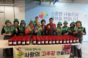 안녕일보 배윤 기자 | 오산시 새마을지도자 신장1동 부녀회가 지난 31일 신장1동 행정복지센터 지하식당에서 직접 담근 고추장을 취약계층에 전달하며 이웃사랑을 실천했다고 밝혔다. 이번 나눔 행사는 신장1동 새마을부녀회와 새마을지도자협의회 회원들이 함께 참여해 전통 방식으로 고추장을 담그고, 이를 2kg씩 정성껏 포장해 관내 취약계층 90가구에 전달하는 방식으로 진행됐다. 임서연 신장1동 새마을부녀회장은 “직접 담근 고추장을 이웃들과 나눌 수 있어 더욱 뜻깊다”며 “작은 정성이지만 맛있게 드시고 건강하게 지내시길 바란다”고 말했다. 이명숙 신장1동장은 “매년 정성껏 담근 장으로 나눔을 실천해 주시는 새마을부녀회와 새마을지도자협의회에 깊이 감사드린다”며 “앞으로도 민관이 함께하는 나눔 활동을 지속적으로 추진해 따뜻한 공동체를 만들어 나가겠다”고 밝혔다. 한편 신장1동 행정복지센터는 지역사회 복지 증진과 주민 화합을 위해 다양한 봉사와 나눔 활동을 꾸준히 이어가고 있으며, 앞으로도 이웃과 함께하는 따뜻한 행정을 실현해 나갈 계획이다.