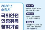 안녕일보 배윤 기자 | 수원특례시가 관내 중소기업이 국외 안전인증 취득하는 데 소요되는 비용을 지원한다. 수원시는 24일까지 ‘2026년 국외 규격인증 취득 지원사업’에 참가할 창업·중소·제조기업 8개 업체를 모집한다. 인증비·시험비·컨설팅비 등 안전인증 취득에 필요한 총비용의 80%를 실비로 지원한다. 기업당 최대 2개 제품의 인증 취득을 지원하고, 지원 한도는 기업당 440만 원이다. 지원 분야는 미국 안전인증(UL·FCC·FDA), 유럽 안전인증(CE) 등 436개 규격이다. 제품안전인증이 아닌 아이에스오(ISO) 인증은 제외된다. 수원시 관계자는 “중소제조기업에게는 국외 안전인증을 취득하는 과정이 수출 장벽처럼 느껴질 정도로 쉽지 않다”며 “기업이 교역 대상국의 안전 규제에 선제적으로 대응할 수 있도록, 국외 안전인증 취득을 지원하겠다”고 말했다.