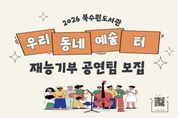 안녕일보 배윤 기자 | 북수원·대추골·일월도서관은 시민 참여 문화공연 ‘우리동네 예술 터’에 참여할 재능기부 공연팀을 4월 30일까지 모집한다. 모집 대상은 수원시 예술 동아리와 단체, 예술인으로 개인과 단체 모두 신청할 수 있다. 모집 분야는 ▲음악 ▲무용 ▲연극 등 다양한 장르의 공연이며, 지역 주민과 함께 나눌 수 있는 재능기부 형태의 공연이어야 한다. 정치적·종교적·영리 목적의 공연은 제외한다. 선정된 공연팀은 5월부터 12월까지 북수원·대추골·일월도서관 강당 등에서 공연할 수 있으며, 도서관은 공연 공간을 제공한다. 수원시 관계자는 “이번 사업은 이웃의 재능을 나누며 도서관을 소통의 공간으로 만드는 데 의미가 있다”며 “지역 예술인에게는 무대를, 시민에게는 문화 향유 기회를 제공하는 만큼 많은 참여를 바란다”고 말했다.