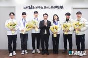 안녕일보 배윤 기자 | 화성특례시는 2일 시청 중앙회의실에서 ‘2025 동트는 동해컵 프로볼링대회’에서 개인전 및 단체전 우승을 차지한 팀MK글로리아 프로볼링팀을 초청해 격려했다. 이날 행사에는 정명근 화성특례시장과 조승문 제2부시장, 장민기 화성시 문화체육특보(팀 구단주), 선수단이 함께 참석해, 전국 대회에서 우수한 성과를 거둔 선수들을 축하하고 화성특례시의 위상을 높인 데 대해 감사를 전했다. MK글로리아 프로볼링팀은 올해부터 화성시 BI(브랜드 아이덴티티) 사용 승인을 받아, 선수 유니폼에 시의 BI를 새기고 각종 대회에 출전하며 사실상 홍보대사 역할을 하고 있다. 이번 동해컵 대회에서도 선수단은 화성특례시 유니폼을 입고 출전해 뛰어난 기량과 팀워크를 발휘했다. 개인전에서는 박경신 선수가 우승을 차지했고, 단체전에서는 윤명한, 박경신, 김수용 선수가 함께 우승을 거머쥐며 국내 최정상급 팀임을 입증했다. 정명근 화성특례시장은 선수단으로부터 직접 우승 트로피를 전달받고 “팀MK글로리아의 열정과 실력이 화성특례시의 명예를 드높였다”며 선수단의 노고를 치하했다. 장민기 구단주는 “앞으로도 좋은 성적