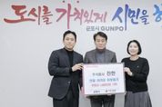 안녕일보 배윤 기자 | 군포시는 지난 11일 공단로에 위치한 포장용 플리스틱 성형용기 제조업체인 주식회사 진한으로 부터 후원금 1,000만원을 기탁 받았다고 밝혔다. 기탁식에는 하은호 군포시장, 배성한 이사 등 관계자가 참석하여 담소를 나눴다. 이날 기탁식에 참석한 배성한 이사는 “연말을 맞이하여 관내 어려운 이웃과 온정을 나눌 수 있어 기쁘다. 군포시 관내 기업으로 지역사회의 사회보장 발전을 위해 기여하는 건강한 기업이 되도록 노력하겠다”고 말했다. 하은호 군포시장은 “매년 지역사회의 어려운 이웃을 위해 나눔에 앞장서며 지역사회보장 발전에 기여하고자 노력하는 ㈜진한의 임직원 및 관계자에 감사드린다. 앞으로도 지역과 함께 성장하는 기업이 되길 진심으로 바란다”고 전했다. 이번 후원금은 사회복지공동모금회를 통해 관내 취약계층에 전달 할 예정이다.