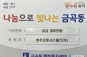 안녕일보 배윤 기자 | 지난 29일 수원시 권선구 금곡동 행정복지센터는 한주오토시스템즈(주)로부터 저소득 가정을 지원하기 위한 성금 300만 원을 전달받았다고 밝혔다. 이번에 전달된 성금 300만 원은 금곡동 관내 저소득 가정을 대상으로 한 특화사업 및 맞춤형 복지사업에 활용될 계획이다. 한주오토시스템즈(주) 조성문 대표는 “연말을 맞아 지역 내 어려운 이웃들에게 작은 보탬이 되길 바란다”며 “앞으로도 지역사회와 함께 성장하며 나눔을 실천하는 기업이 되도록 노력하겠다”라고 말했다. 장성임 금곡동장은 “연말을 맞아 어려운 이웃을 위해 따뜻한 나눔을 실천해 주신 한주오토시스템즈(주)에 깊이 감사드린다”며 “앞으로도 지역사회와 상생하는 기업으로 지속적인 역할을 해주시길 기대한다”라고 말했다.