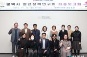 안녕일보 배윤 기자 | 평택시의회 의원 연구단체인 ‘평택시 청년정책연구회’는 17일 시의회 간담회장에서 최종보고회를 개최했다. 보고회에는 김산수 대표의원을 비롯해 김혜영·이기형·유승영 의원과 외부 전문가 회원, 청년정책과장 등 약 15명의 관계자가 참석했으며 연구용역을 맡은 더가능연구소 정현미 수석연구원으로부터 연구용역 최종보고를 청취하고 질의응답 시간을 가졌다. 주요 내용으로 △중앙정부 및 경기도 청년정책 주요 방향 △청년친화도시 지자체 정책의 시사점 △청년친화도시 조성을 위한 정책 제안 △평택시 청년친화도시 추진 방향 등에 대해 청취 후, 참석자들 간 여러 의견을 교환했다. 김산수 대표의원은 “올해 연구회 활동은 오늘로 마무리 되지만 많은 청년들이 평택시에서 일하고·놀고·살고 싶게 만드는 청년정책의 근본적인 시스템 구축의 시작점이기도 하다”며 “향후 청년친화도시 지정을 위하여 청년의 목소리를 중심에 두고 부족한 부분을 보완하며, 청년이 머물고 성장할 수 있는 정책 기반을 마련하기 위해 계속 관심을 가지고 지원하겠다”고 말했다. 한편, 해당 연구회는 ‘평택시 청년친화도시 조성을 위한 정책 연구’를