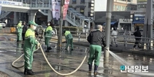 수원시 팔달구, 수원역 로데오거리 물청소로‘설 손님맞이’에 힘써