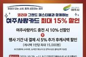 안녕일보 배윤 기자 | 여주시는 ‘2025 코리아 그랜드 페스티벌’ 기간인 오는 10월 29일부터 11월 9일까지 ‘여주사랑카드 최대 15% 할인’ 행사를 한다고 밝혔다. 여주사랑카드 사용자는 충전 시 10% 선할인(인센티브 충전)을 받을 수 있으며, 행사기간 내 결제 시 추가로 5% 후캐시백 지원을 받을 수 있다. 5% 캐시백 행사는 예산 소진시까지 1인 최대15,000원까지 혜택을 받을 수 있도록 지원하며, 지원 내역은 모바일 경기지역화폐 앱에서 실시간으로 확인할 수 있다고 안내했다. (5% 캐시백 행사에 민생회복 소비쿠폰, 농어민기회소득 등 정책수당은 결제 금액에 포함되지 않는다.) 코리아 그랜드 페스티벌은 내수 활성화를 위해 중소벤처기업부, 산업통상자원부 등 정부가 주관하는 소비 축제로 10개 부처와 3만개 유통사가 참여하며, 지역사랑상품권과 디지털온누리상품권 추가 할인, 상생소비복권, 카드사 캐시백 이벤트 등을 진행한다. 여주시 일자리경제과 관계자는 “이번 행사를 통해 지역 내 소비 진작, 지역 소상공인들의 매출 증대에 도움이 되기를 바란다”라며, “시민분들의 많은 관심과 참여를 바란다”고 말했다.