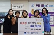 안녕일보 배윤 기자 | 수원 고은 주간보호센터는 지난 12월 9일, 관내 어려운 이웃을 돕기 위해 수원시 팔달구 우만1동에 성금 50만 원을 기부하며 따뜻한 마음을 전했다. 권은주 고은 주간보호센터장은 “연말연시 어려움을 겪는 이웃들에게 작은 힘이 되길 바라는 마음으로 준비했다”며 “모두가 건강하고 따뜻한 연말을 보내시길 바란다”고 전했다. 또한 “앞으로도 지역사회를 위한 사회공헌 활동을 꾸준히 이어가겠다”며 지속적인 나눔 의지를 밝혔다. 이에 김미라 우만1동장은 “늘 지역을 위한 사랑을 실천해 주시는 고은 주간보호센터에 깊이 감사드린다”며 “전달해 주신 소중한 성금이 꼭 필요한 이웃들에게 따뜻하게 전달되도록 하겠다”고 감사의 뜻을 전했다. 우만1동 행정복지센터는 연말을 맞아 다양한 이웃돕기 활동을 통해 지역 내 취약계층 지원에 더욱 힘쓸 계획이다.
