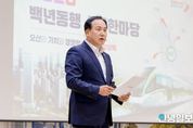 안녕일보 배윤 기자 | 오산시가 지난 3월 17일부터 26일까지 8개 행정동을 순회하며 진행한 ‘2026 백년동행 소통한마당’을 마무리했다. 시정 전반을 설명하고 시민과 직접 대화를 나누는 자리로 운영돼, 각 동마다 꾸준한 참여가 이어졌다. 이권재 시장은 각 동을 직접 방문해 도시개발과 교통, 생활 인프라 등 시정 주요 현안을 설명하고 시민들과 대화를 이어갔다. 발표 이후에는 질의응답을 통해 현장에서 궁금한 사항을 주고받는 방식으로 진행됐다. 이번 소통한마당에서는 세교3 공공주택지구 개발 방향을 비롯해 운암뜰 AI시티 구상, 세교터미널 부지 활용, 종합스포츠타운 조성 등 주요 도시개발 사업이 함께 다뤄졌다. 또 (구)계성제지 부지 개발 등 장기간 활용되지 못했던 부지에 대한 계획도 공유됐다. ◇ 동별 여건 반영한 사업 설명 이어져 설명은 각 동의 여건을 반영해 이어졌다. 세마동에서는 주차장 조성과 서랑동 도로개설, 수변공원 조성 등 생활 기반 정비 방향이 언급됐고, 남촌동에서는 문화공원과 체육시설 확충 계획이 소개됐다. 초평동은 세교3지구 지정에 따른 개발 방향이 중심이 됐으며, 신장권역에서는 청소