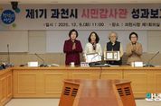 안녕일보 배윤 기자 | 과천시는 9일 시청 제1회의실에서 신계용 과천시장과 시민감사관 20여 명이 참석한 가운데 ‘2025년 시민감사관 성과보고회’를 개최했다. 과천시의 시민감사관 제도는 법무·회계·복지·시설·환경 등 5개 분야의 외부 전문가 20명이 참여해 시정 감사에 직접 참여하는 시민 참여형 감사제도다. 시는 시민의 시각을 행정에 반영해 공정하고 투명한 감사 시스템을 구축하기 위해 2023년부터 제도를 운영하고 있다. 올해 시민감사관은 자체보조금 특정감사, 과천문화재단 종합감사, 자동심장충격기(AED) 특정감사, 환경사업소 종합감사 등 총 5회의 자체감사에 참여했다. 그 과정에서 시정요구 12건, 제도 개선·주민불편 해소 의견 44건 등 총 56건의 의견을 제시하며 생활 현장에서의 감시 기능을 충실히 수행했다. 보고회에서는 2025년 활동 우수사례가 공유됐으며, 감사활동을 통해 시정 발전에 기여한 보건 분야 김형숙 시민감사관, 복지 분야 전경옥 시민감사관에 대한 표창도 진행됐다. 과천시는 이날 성과보고회를 통해 올해 운영 성과를 점검하고, 2026년 시민감사관 운영 계획을 발표했다. 내년에는