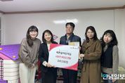 안녕일보 배윤 기자 | 시흥시 연성동 행정복지센터에 지난 2월 6일 연성동 예쁜꿈어린이집이 지역사회 내 취약계층을 돕기 위한 후원금 269,500원을 기탁했다. 이번 후원은 예쁜꿈어린이집 원아들과 교직원들이 함께 참여한 나눔 활동의 하나로 마련된 것으로, 아이들이 직접 참여한 바자회를 통해 조성된 수익금이다. 해당 후원금은 연성동 내 도움이 필요한 이웃들을 위해 사용될 예정이다. 예쁜꿈어린이집은 평소 일상 교육 속에서 나눔과 배려의 가치를 자연스럽게 익힐 수 있도록 다양한 체험 활동을 운영하며, 이를 통해 아이들이 지역사회 구성원으로서 역할과 책임을 인식할 수 있도록 돕고 있다. 한두선 예쁜꿈어린이집 원장은 “아이들이 함께 나눈 작은 정성이 누군가에게는 큰 힘이 되기를 바란다”라며 “이웃을 돌아보는 경험이 아이들의 성장 과정에서 소중한 기억으로 남았으면 좋겠다”라고 전했다. 김정호 연성동장은 “아이들과 교직원 모두가 마음을 모아 준비한 후원이라 더욱 뜻깊다”라며 “기탁해 주신 소중한 성금은 꼭 필요한 이웃을 발굴해 청렴하게 전달하겠다. 앞으로도 따뜻한 나눔이 이어질 수 있도록 행정에서도 노력하겠다”