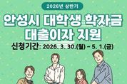 안녕일보 배윤 기자 | 안성시는 대학생 및 대학원생들의 교육비 부담을 덜어주기 위해 ‘2026년 상반기 대학생 학자금 대출이자 지원사업’을 시행한다고 밝혔다. 지원 대상은 공고일(2026. 3. 24.)기준으로 안성시에 주소를 두고 있는 대학생 및 대학원생(휴학생 포함)이다. 신청 기간은 3월 30일부터 5월 1일까지이며, 신청을 희망하는 학생은 주소지 읍·면·동 행정복지센터 또는 안성시청(미래교육과)를 방문하여 신청서와 구비서류(주민등록등본, 재학증명서)를 제출하면 된다. 지원 대상자로 선정되면 대상자가 한국장학재단에서 대출받은 학자금에 대한 2025년 하반기(7월~12월) 발생 이자를 안성시가 지급하게 된다. 지급은 대출 계좌 원리금에서 차감하는 방식으로 진행되며, 지원 결과발표 및 이자는 오는 6월 지급 예정이며, 확정된 시점에 한국장학재단 인터넷 홈페이지 및 고객센터에서 확인할 수 있다. 안성시 관계자는 “학자금 대출이자 지원사업을 통해 대학생들의 학업 부담을 완화하고, 학업에 전념할 수 있는 환경을 조성하는 데 도움이 되길 바란다”고 말했다.
