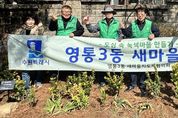 안녕일보 배윤 기자 | 수원시 영통구 영통3동은 지난 24일, 영통3동 새마을지도자협의회가 영통3차 풍림아파트 일원에 새마을정원을 조성했다고 밝혔다. 이날 새마을지도자협의회는 쾌적한 마을 환경 조성을 위해 겨우내 무성해진 잡초와 방치된 쓰레기를 제거한 뒤, 봄을 맞아 노란 꽃을 피우는 황금사철을 식재했다. 이번 행사는 영통3동 새마을지도자협의회 상반기 보조사업인 ‘새마을 정원 조성’ 사업의 일환으로 진행됐으며, 영통3동 새마을지도자협의회는 주민들에게 깨끗하고 쾌적한 생활환경을 제공하고자 꾸준히 봉사하고 있다. 김광회 영통3동 새마을지도자협의회장은 “올해도 꾸준히 봉사를 이어 나갈 수 있게 되어 회원 모두 보람을 느끼며, 이번 봄맞이 행사로 주민들이 쾌적한 녹색 풍경을 즐기길 바라는 마음이다”라고 전했다. 김인태 영통3동장은 “협의회의 구슬땀으로 이루어진 이번 새마을 정원에 주민들도 더욱 애착을 가져주실 것으로 기대한다”고 전했다.