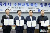 안녕일보 배윤 기자 | 수원특례시가 어린이·청소년 독서 문화를 확산하는 ‘수원새빛북런’ 사업을 추진한다. 수원시와 ㈜아이스크림에듀, (사)씨드(Seed)숲, 수원시서점협동조합은 23일 시청 상황실에서 ‘수원새빛북런(Book Learn) 업무협약’을 체결하고, 협력을 약속했다. 수원새빛북런은 민간의 우수한 독서교육 콘텐츠로 미래를 이끌어 갈 독서 인재를 키우는 사회공헌사업이다. 4~8월에 독서챌린지 앱·홈페이지에서 독서룰 인증하고, 독후감을 작성하는 ‘수원새빛북런 챌린지’를 진행한다. 9~10월에는 코스튬 퍼레이드, 성곽 걷기, 체험존 운영 등으로 진행되는 ‘수원새빛북런 데이’를 연다. 협약에 따라 수원시는 독서문화 확산을 위한 행정 지원을 하고, (사)씨드숲은 수원새빛북런 사업 운영을 총괄한다. ㈜아이스크림에듀는 독서 인증 챌린지 콘텐츠를 제공하고, 수원시서점협동조합은 지역 서점을 기반으로 한 독서문화프로그램·캠페인 등 독서 행사 개최에 협력한다. 이날 협약식에는 이재준 수원시장과 ㈜아이스크림에듀 대표, (사)씨드숲 사무총장, 수원시서점협동조합 이사장 등이 참석했다. 이재준