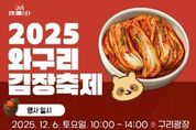 안녕일보 배윤 기자 | 구리시상권활성화재단은 오는 12월 6일 구리광장에서 ‘2025 와구리 김장축제’를 개최한다고 밝혔다. 이번 축제는 ‘경기도 상권 친화형 도시 조성 공모사업’ 선정으로 추진되는 ‘구리 윈터페스타’의 첫 번째 행사로, 지역 농산물 소비 촉진, 전통문화 체험, 이웃돕기 나눔 실천을 주요 가치로 삼아 시민 누구나 참여할 수 있는 겨울 축제로 마련됐다. 축제의 하이라이트인 김장 체험은 시민들이 직접 김치를 담가보는 프로그램으로 진행되며, 흑백요리사로 큰 인기를 얻고 있는 이모카세 김미령 한식 요리사의 지도로 구리시새마을회, 구리 도시공사, 무지개합창단 등 지역 자원봉사자들이 함께해 김장을 처음 접하는 시민들도 손쉽게 전통 김치를 완성할 수 있도록 도울 예정이다. 이날 담근 김치의 일부는 관내 홀로 어르신, 다문화가정 등 취약계층에 전달돼 시민이 직접 참여하는 연말 나눔 활동으로 따뜻한 의미를 더한다. 또한 축제장을 찾은 시민들을 위해 트로트 가수 태진아의 공연, 가야금 영재 조영재 & 아인스바움 윈드 챔버 연주 등 풍성한 무대 프로그램과 지역 소상공인 먹거리 부스, 다양한 체험 코너