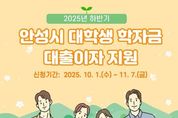 안녕일보 배윤 기자 | 안성시는 오는 10월 1일부터 11월 7일까지 ‘2025년도 하반기 안성시 대학생 학자금 대출이자’ 지원 신청을 받는다. 지원 대상은 공고일(2025. 10. 1.)기준으로 안성시에 주민등록 주소를 두고 재학(휴학 포함)중인 대학(원) 재학생(휴학생)이다. 지원 대상자로 선정되면 대상자가 한국장학재단에서 대출받은 학자금에 대한 2025년 상반기(1월~6월) 발생 이자를 안성시가 지급하게 된다. 지급은 대출 계좌 원리금에서 차감하는 방식으로 진행되며, 지원 내역은 12월 지급이 확정된 시점에 한국장학재단 인터넷 홈페이지에서 확인할 수 있다. 신청 방법은 주소지 읍·면·동 행정복지센터 또는 안성시청(미래교육과)으로 방문하여 접수하면 된다. 안성시 관계자는 “학자금 대출이자 지원 사업을 통해 대학생들의 학업 부담을 완화하고, 학업에 전념할 수 있는 환경을 조성하는데 도움이 되길 바란다”고 전했다.