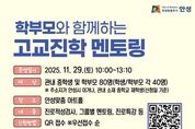 안녕일보 배윤 기자 | 안성시는 오는 11월 29일 오전 10시, 안성맞춤 아트홀에서 관내 중학생과 학부모를 대상으로 ‘학부모와 함께하는 고교진학 멘토링’을 실시한다고 밝혔다. 이번 멘토링은 ‘진로탐색, 함께 걸어요! 학부모와 자녀가 함께 만드는 고교진학 로드맵’ 이라는 슬로건 아래, 학생들이 자기주도적으로 진로를 설계하고, 학부모가 효과적으로 자녀의 진로를 선택할 수 있도록 돕는 데 중점을 두고 있다. 특히, 가정과 지역사회가 함께하는 진로교육 협력체계를 구축함으로써, 지역 교육공동체 역량 강화와 진로교육 환경 개선을 동시에 도모할 계획이다. 본 프로그램은 안성시 주소지를 두고 있거나 관내 중학교 재학 중인 중학생과 학부모 총 80명을 대상으로 하며, 신청은 10월 1일(수)부터 11월 7일(금)까지 QR코드를 통해 선착순 접수가 가능하다. 행사는 ▲진로 특강 및 검사 해석(80분) ▲커리어맵 실습(30분) ▲그룹별 멘토링(60분) 등이 진행되며, 전문 강사와 멘토가 참여해 실질적이고 체계적인 진로·진학 설계를 돕는다. 그룹 멘토링은 참가 학생 40명을 8명씩 5개 그룹으로 나누어 맞춤형 지도가 이루어질 예정