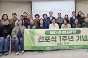 안녕일보 배윤 기자 | 평택시 배다리근린공원을 생태공원으로 선포한 지 1주 년을 맞아 지난 14일, 시민 활동 모임인 ‘배다리생태지기’에서 배다리생태공원에 서식하는 다양한 야생동물들의 사계절 모습과 꼬리명주나비 서식지 관리 등을 홍보하고, 폐현수막으로 만든 쓰레기수거 가방으로 활용하여 환경정화를 하며 기념 활동을 마무리했다. 이날 기념행사에는 서현옥 경기도의회 의원, 평택시의회 김산수 복지환경위원장, 최준구 의원, 최선자 의원, 주민 등 40여 명이 참석했다. 정장선 평택시장은 국외 출장으로 인해 영상으로 시민들이 자발적으로 야생동물을 지켜주심에 감사함을 전했다. 배다리생태공원은 금개구리, 맹꽁이, 꼬리명주나비와 같은 멸종위기종이 서식하고 있으며, 흰뺨검둥오리, 큰부리큰기러기 등의 조류도 관찰할 수 있다. 이에 시민 활동 모임인 ‘배다리생태지기’에서 자발적으로 배다리 야간 생태 탐사 활동, 생태교육, 생태전시회 등을 추진하여 일반 시민들의 생태 감수성을 높이고 있다.