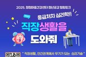 안녕일보 배윤 기자 | 수원시청소년청년재단(이사장 최종진) 청청마음건강센터는 오는 12월 6일 오후 2시부터 4시까지, 관내 청년(19~39세) 및 지역주민의 심리 및 정서 지원을 위한 청년공감 힐링토크 “응급처치 심리학, 직장생활을 도와줘”를 개최한다고 밝혔다. 이번 청년공감 힐링토크는 “심리학, 직장생활을 도와줘” 책의 저자이자 조직 및 산업심리학 박사인 박진우 박사를 초청하여 청년 직장인의 안녕감과 조직의 성과 향상을 위한 심리적 기술을 업무 현장에 쉽게 적용할 수 있도록 도울 예정이다. 강연 내용으로는 ▲1부(14:00~15:00)에서 청년들의 성공적인 직장생활을 위한 심리 기술을 전달하고 ▲2부(15:00~16:00)는 직장생활에서 경험하는 다양한 상황과 고민에 대한 솔루션을 제공한다. 광교청소년청년센터 4층 멀티강의실에서 운영되는 이번 강연은 관내 청년 뿐 만 아니라 관심 있는 지역주민 누구나 무료로 사전신청(QR코드)을 통해 참여가능하다. 청청마음건강센터 관계자는 “청년공감 힐링토크”를 통해 직장생활을 잘하고 싶은 청년 개개인에게 필요한 심리기술을 제공하고, 솔루션을 통해 청년들이 겪